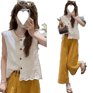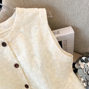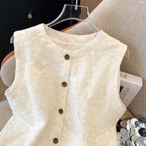 小香风提花圆领蕾丝衫女夏季新款单排扣开衫无袖马甲百搭显瘦上衣