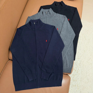 美式休闲毛衣男士全拉链开衫针织衫棉质毛线衣立领青年小马标外套