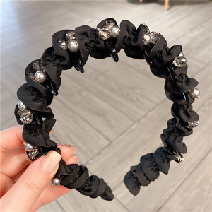 F6571-2型 # 黒色の丸玉付きフリルヘアバンド