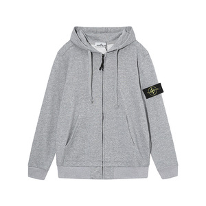 跨境 经典猴子岛STONE纯色圆领拉链徽章连帽卫衣男女同款正确版