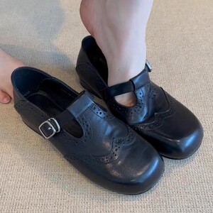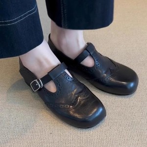 牛皮版~平底布洛克雕花小皮鞋女2025春秋新款真皮圆头玛丽珍单鞋