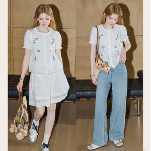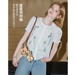 [リヨセル+コットン]ガーリー半袖刺繍シャツレディース2025夏新作花柄シャツ