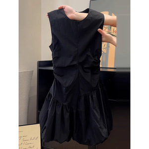 フレンチスイートプリンセスブラックノースリーブベストドレス女性の夏の2025新しい小さな花のつぼみショートスカート
