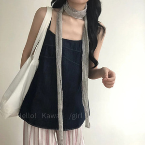 多用途のレトロな文学的で芸術的なスタイルのクールなスカーフニッチスカーフロングリネンシルクスカーフストライプ韓国スタイル