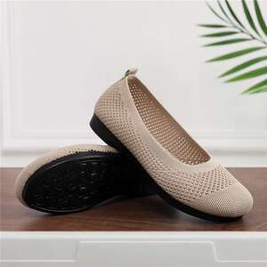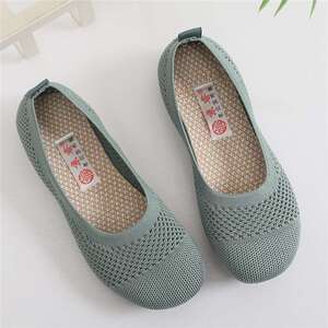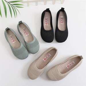Laobei 布靴夏中空メッシュファッションカジュアルシューズママシューズ平底柔らかい表面快適で通気性