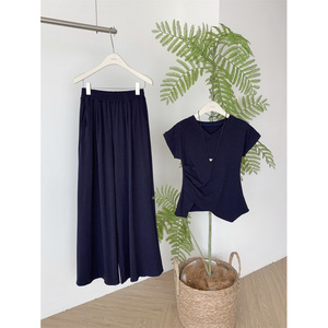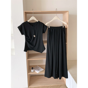 セナ 2025 新作夏デザイン不規則ウエスト半袖 T シャツ + ハイウエストカジュアル万能ワイドレッグパンツ