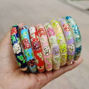 レトロオープン七宝油滴花ブレスレット国民トレンド中空ラウンドブレスレット女性合金ブレスレット卸売