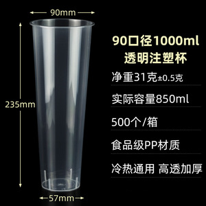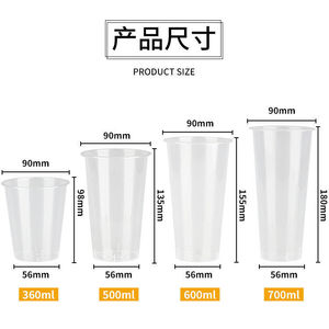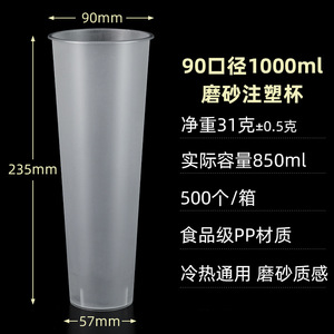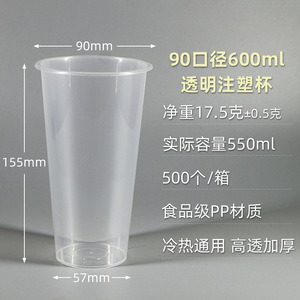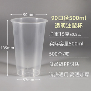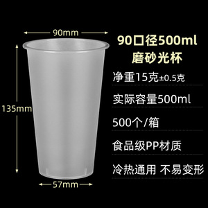 使い捨て 90 口径ミルクティー射出成形カップ 500 ミリリットル透明つや消し増粘 700 パッケージプラスチックカップ蓋付き