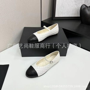 ハイバージョン 2025 新しい本革ラウンドトゥ浅い口フラットソールメリージェーンシューズレディースファッショナブルで多用途なカラーブロックシューズ