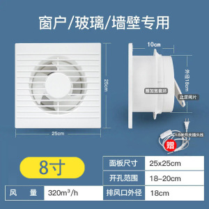 圆孔排气扇卫生间风机排风扇墙壁玻璃浴室窗式抽烟厨房式换气扇静