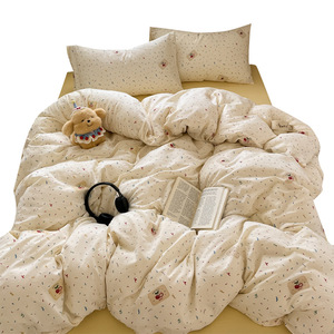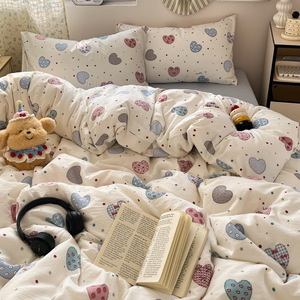 クラスA二重糸純綿4点セットベッドウォッシュコットンシーツ掛け布団カバー夏学生寮3点セット4