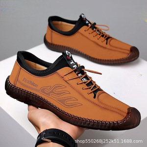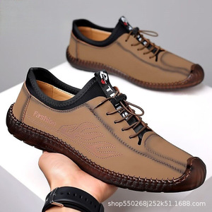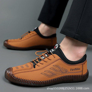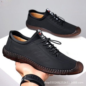 男士休闲皮鞋软皮套脚春秋季男透气鞋软底软面一脚蹬懒人驾车鞋男