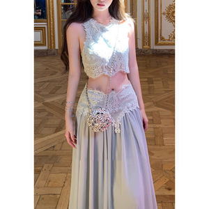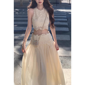 MEIPIN ルーブルパラダイスエレガントで甘くて絶妙なまつげレーストップ + ロングスカートスーツ女性 2025 夏新