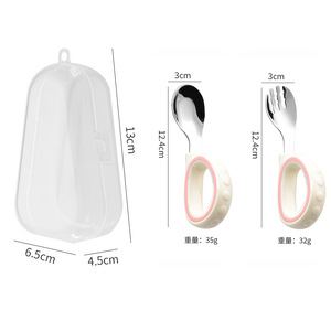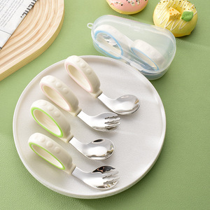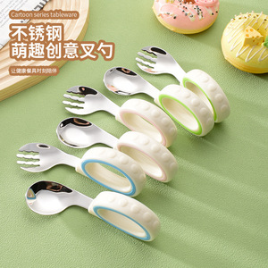 宝宝训练学吃饭辅食勺餐具塑料短柄叉勺套装316不锈钢儿童勺批发
