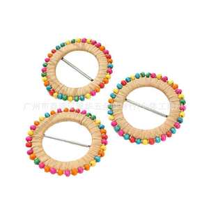ラウンドウッドビーズ手作りラフィア織りベルトバックルヘッドバンド女性の装飾アクセサリー靴バッグ工場直販