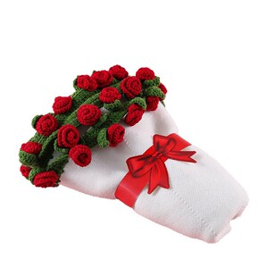 芸能人同風ローズブーケブランケット、手編みで変形しないオリジナルデザイン、彼女への中国のバレンタインデーギフトとして完成品
