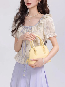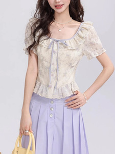 プラスサイズのフリル花柄半袖シャツ女性の夏の太ったmm痩身西洋スタイル年齢を減らすシャツウエストショートトップ