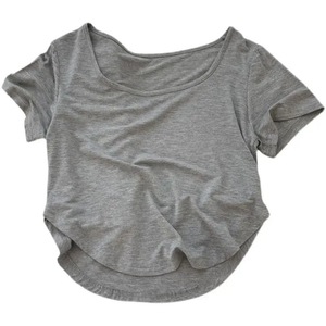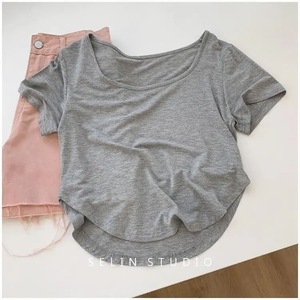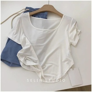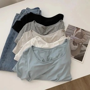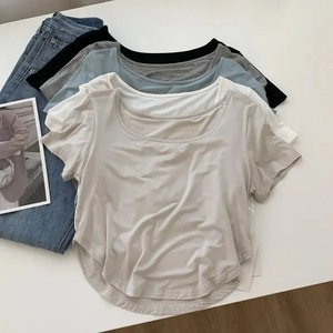 基础款垂感冰丝方领正肩短袖t恤女夏修身短款打底休闲薄款上衣