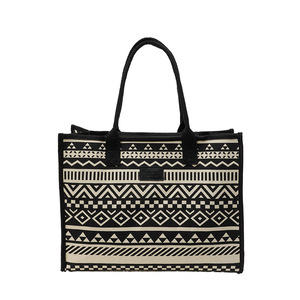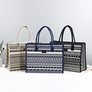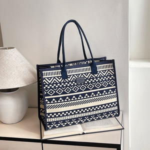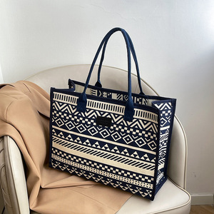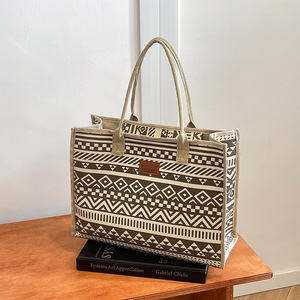 キャンバスエスニックスタイル大容量トートバッグ2025新しい厚みのあるジッパーショルダーバッグ通勤ポータブルショッピングバッグ