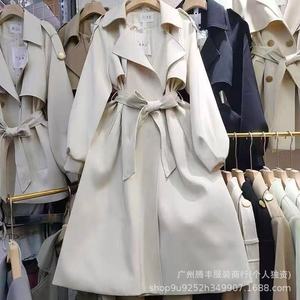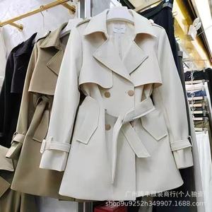 韓国風ウインドブレーカージャケット女性のための 2024 新作春と秋英国スタイルミドル丈人気カーキコート