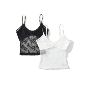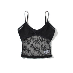 BT910-25 韓国風スリムUネックフェイクツーピース無地レース中空へそ出しショートキャミソール