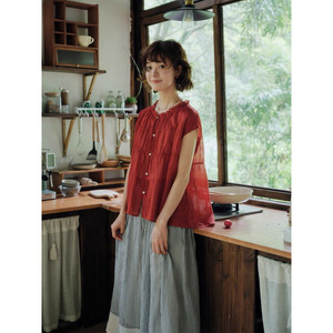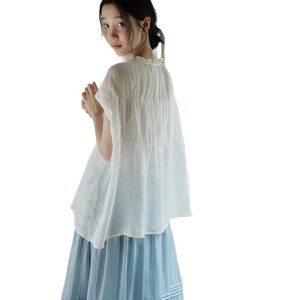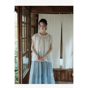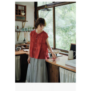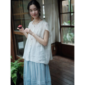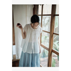 2025年真夏新作ラミーシャツラグランスラウンドネックリラックス和風レディーストップス