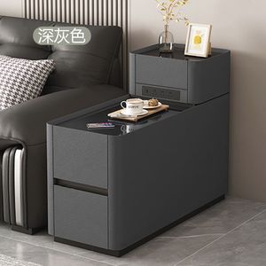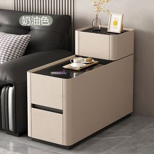 2025 新しいライト高級ハイエンドソファサイドキャビネットリビングルーム多機能サイドキャビネットレザーサイドテーブルワイヤレス充電