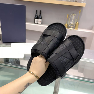 D家新款男士拖鞋刺绣休闲滑梯拖鞋夏季字母提花皮带扣织带一字拖