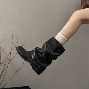 褶皱堆堆靴女2025春款流行超火洋气小短靴西部裤管靴机车马丁靴子