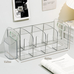 【ペンホルダーモデル】4つのコンパートメント、透明ブックエンド+ペンホルダー(PET素材、耐摩耗性、耐落下性、より耐久性があります)