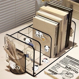 【PIUS組み合わせ】4コンパートメント透明ブックエンド+ペンホルダー+子犬ステッカー5枚(PET素材、耐摩耗性、耐落下性、より耐久性があります)