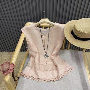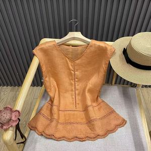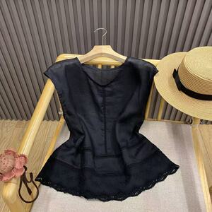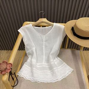 レースステッチ中空 V ネックラミーノースリーブシャツプルオーバー無地文学レトロトップ女性 C82092