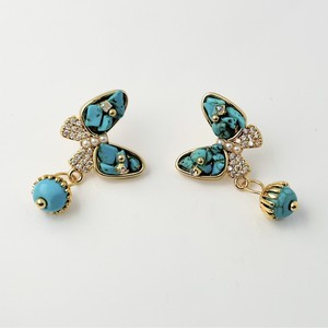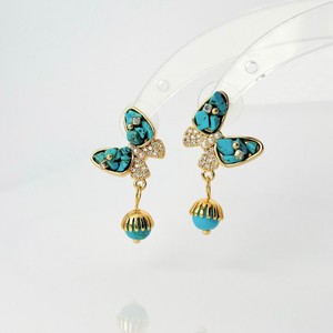 18k真金电镀蓝松石蝴蝶耳环宫廷风气质高级时尚优雅设计感耳饰女