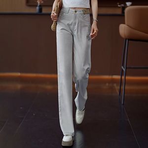 ナローバージョンワイドレッグジーンズ 2025 夏の新ハイウエストスリムルーズウォッシュコットンカジュアルストレートパンツ
