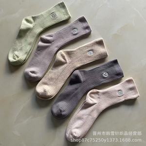 璐璐lulu lemon袜子女四季中筒袜纯色双针刺绣保暖无骨缝合堆堆袜