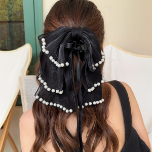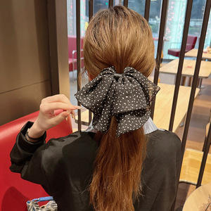 スーパーフェアリーフローラルビッグリボンリボンクリップフォレストスタイルハイエンドシャーククリップ後頭部用シフォン生地ポニーテールクリップ