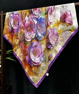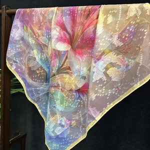 新しいカットフラワー 70 スクエアスカーフ中国風スカーフ 2025 カットフラワー S シルクスカーフ日焼け止めファッション多用途ガーゼスカーフカジュアルスカーフ