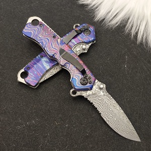 アウトドアナイフ、腐食模様、全鋼、鋭利で便利な護身用折りたたみナイフ、コレクター用フルーツナイフ、ハーフトゥー多機能折りたたみナイフ