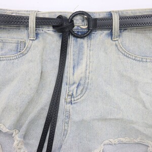 潮流新款手工编圆圈扣双皮条细皮条绑系法腰带绳牛仔裤裙子皮带女