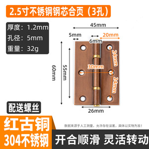 2.5inch サイレントベアリングヒンジ Cタイプ 1個「レッドブロンズ」 60×45mm(ネジ付)