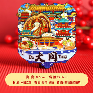 大同悬空寺恒山云冈石窟城市冰箱贴木质磁吸贴旅游文创纪念品礼品