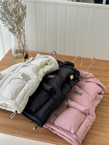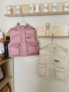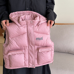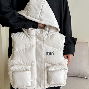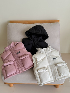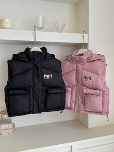 クロスボーダー子供用ダウンコットンベスト2025秋冬ショート厚く暖かいベスト男の子と女の子用、スタイリッシュなフード付きベスト