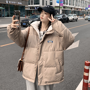 新款女式宽松慵懒风双面穿棉衣冬季日系羊羔绒棉服保暖外套潮