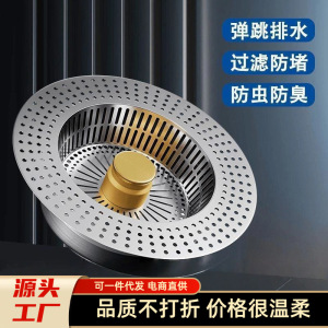 ステンレス製キッチンシンクフィルターバウンスコア排水ユニバーサルプッシュ式シンクシンク漏れプラグ