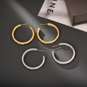金色菱形格纹圈圈耳钉(S925纯银针)