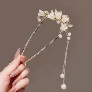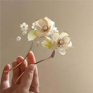 新しい中国風のマグノリアの花 U 字型ヘアピン中国風のヘアピンハイエンドのヘアピン頭飾りチャイナドレスアクセサリー