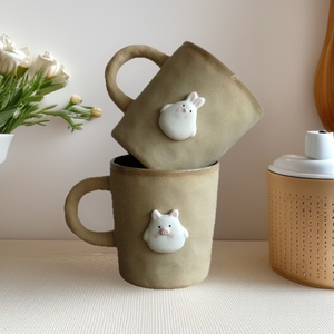 女の子向けの不規則な日本のレトロなコーヒーカップ、見栄えの良いウォーターカップ、家庭用セラミックマグ、大容量