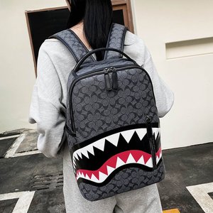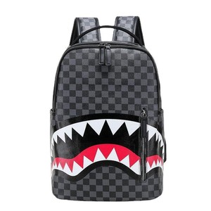 男士双肩包旅行包时尚格子背包学生书包大容量鲨鱼大包街头潮流男