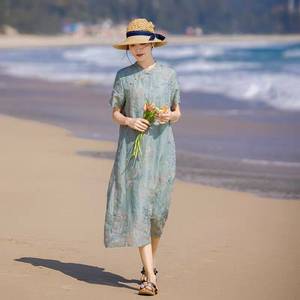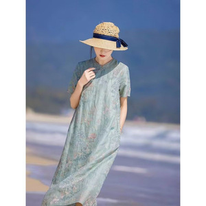 ハイエンド中国風の塔刺繍ラミー改良チャイナドレス女性のための 2025 新しいスタンドカラーボタンアートドレス