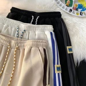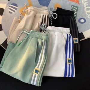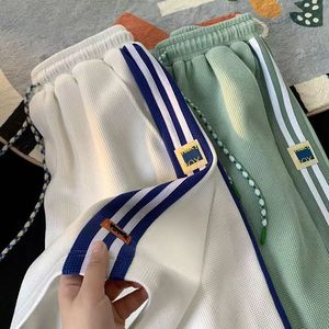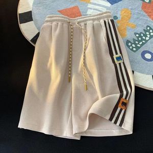 香港風コントラストカラーショートパンツメンズ夏ゆったり大きいサイズストレートパンツトレンド5点パンツハイウエストスリムミッドパンツメンズ